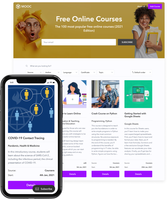 New template designed for online courses/resources catalogs and various directories. https://spreadsimple.com/templates/online-courses/