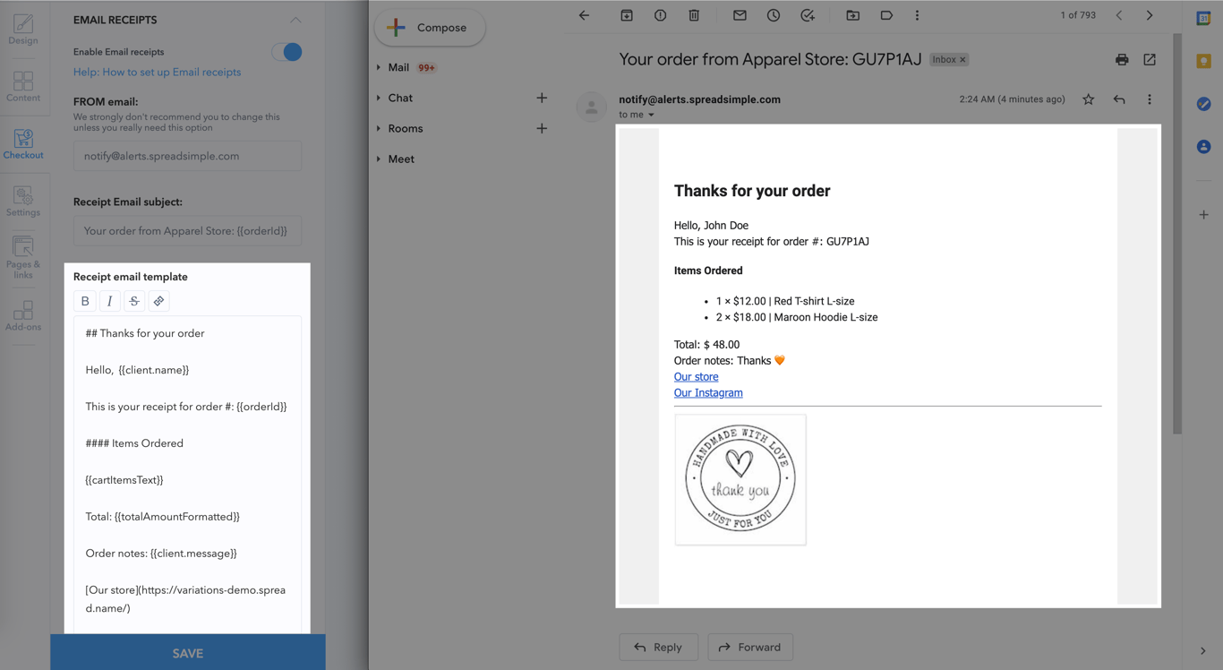 This feature lets you automatically send your customers their order receipts — order summary right after the purchase.