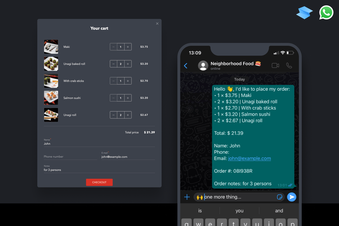 Increase your store conversions by allowing your customers to place orders on WhatsApp.