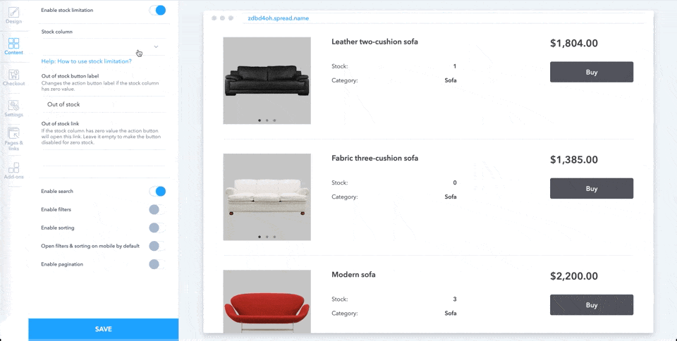 Set a stock limit so your customers won't be able to purchase more items than there are in stock or the items that are out of stock.