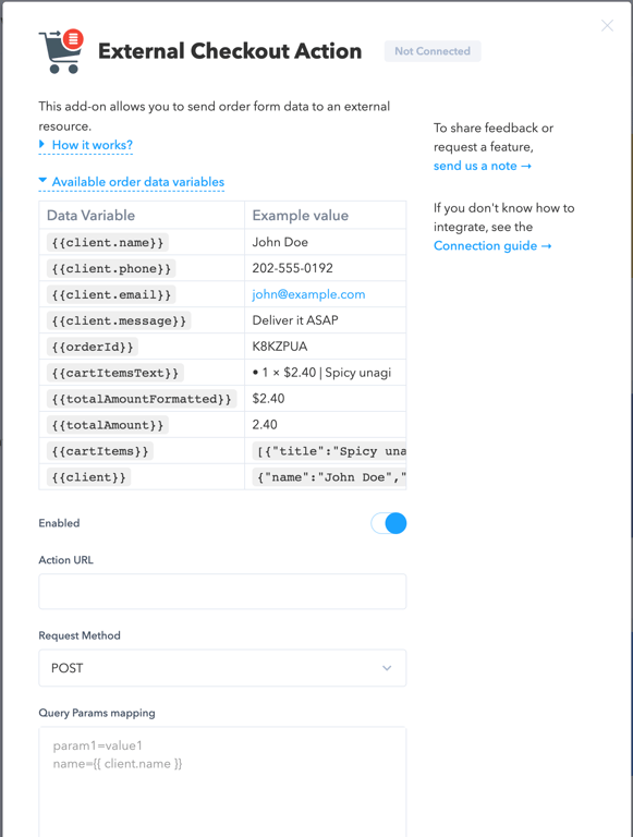 This add-on will be appreciated by tech-savvy users: it allows you to send order form data to an external resource.